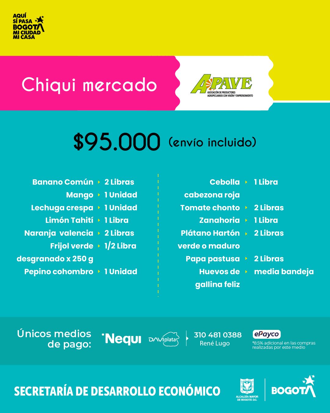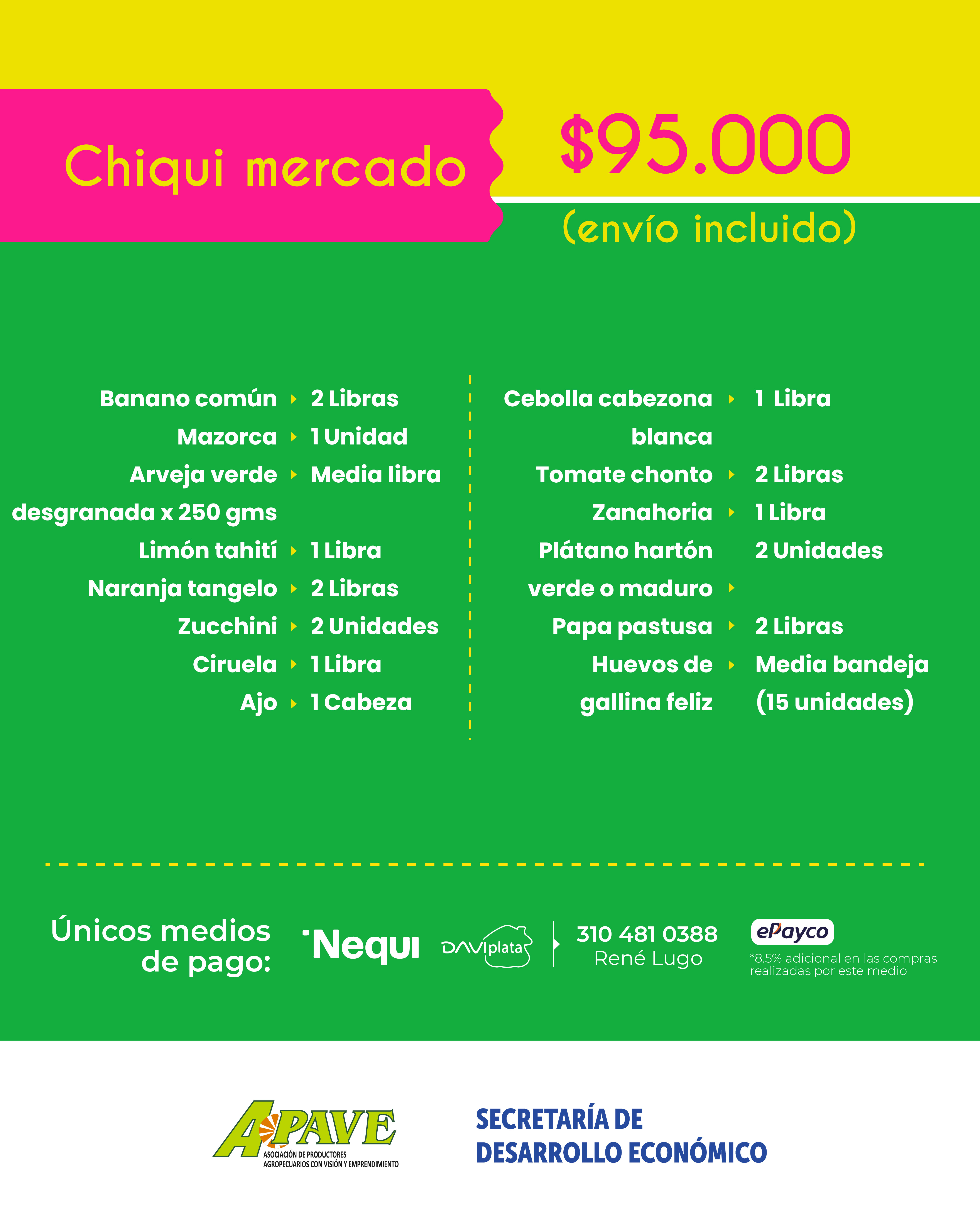 Pago: Epayco, Nequi, Daviplata, Efectivo